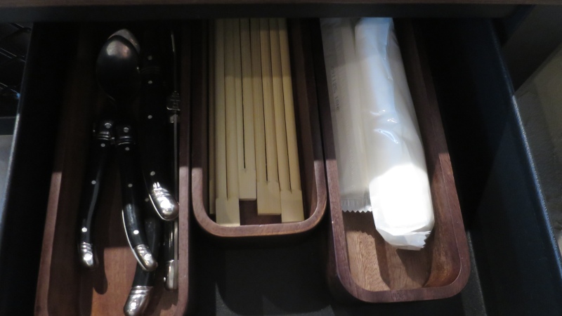 そして、机の引き出しに、お手拭きやらお箸やらが入っていました。合理的ですね。