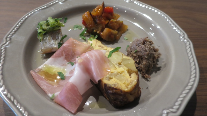 前菜の盛り合わせです。さんま、ラタトゥイユに、鹿肉。そして、生ハムとオムレツです。