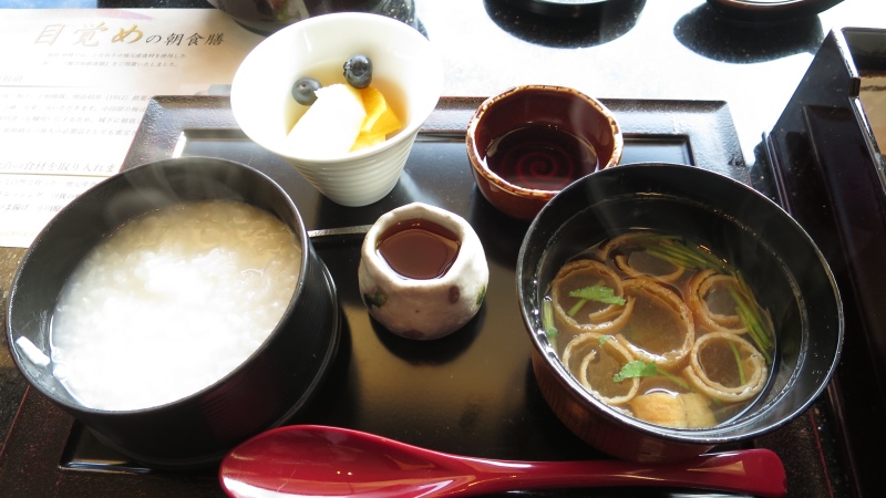 お食事は、お粥にしました。お粥には、鼈甲餡が付いてくるのですが、毎回使わず、です。