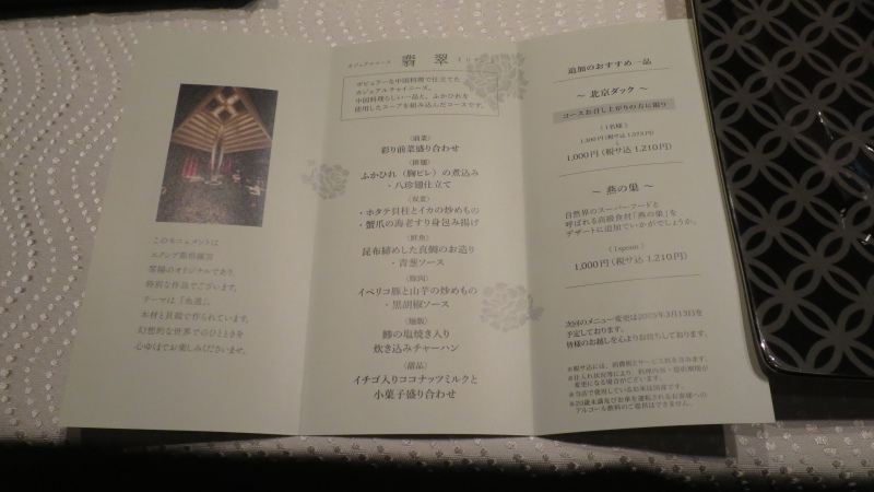 箱根離宮の中国料理「翠陽」で、久しぶりにディナーをいただいてきましたので、ご紹介します。〔25年2月訪問〕