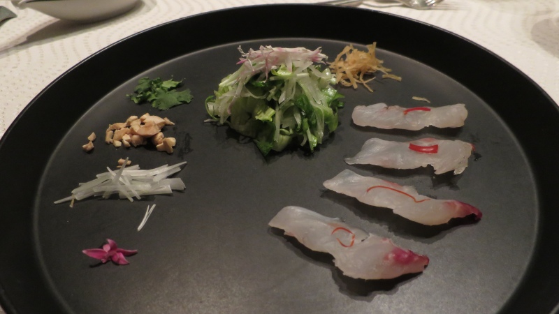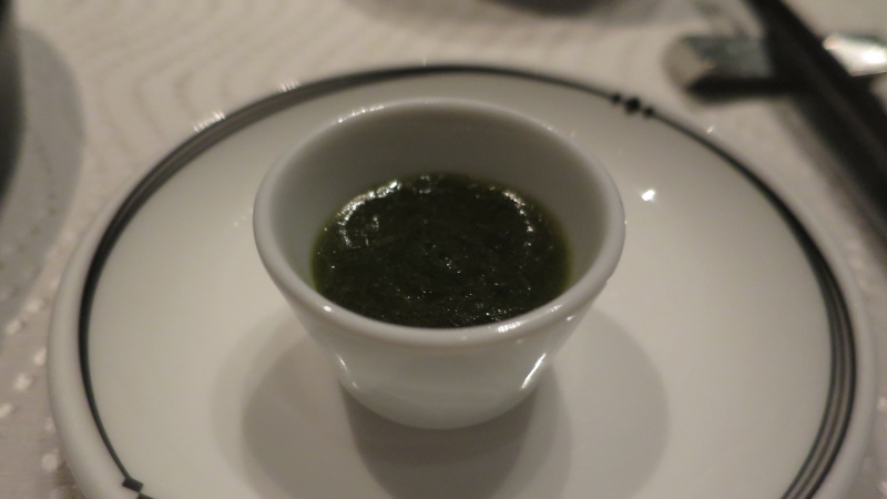 お魚は、「昆布締めした真鯛のお造り・青葱ソース」です。