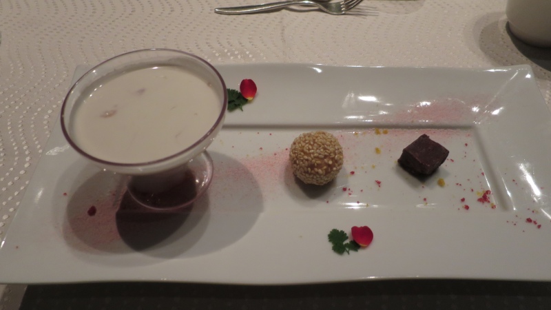 デザートは、「イチゴ入りココナッツミルクと小菓子盛り合わせ」です。