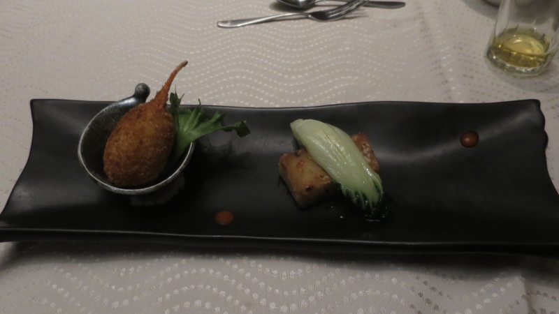 “百花蟹手”蟹爪の海老すり身包み揚げと大根餅・辣椒醤添え