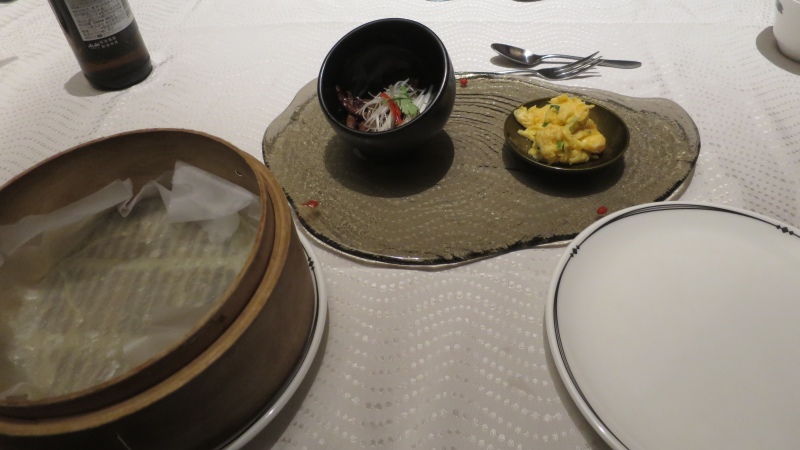 これらを先程の薄餅で北京ダックのように包んでいただきます。ちょっと変わった感じですが、美味しかったです。