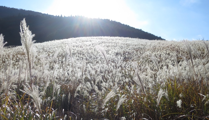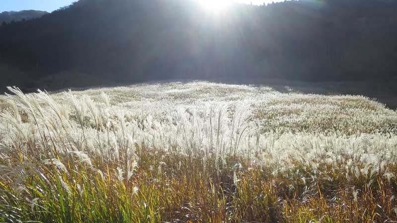 天気が良かったので、すすきの穂が陽の光に輝いています。