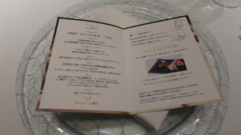 箱根離宮の「ターナ」で、ariaのコースをいただいてきましたので、ご紹介します。〔25年2月訪問〕