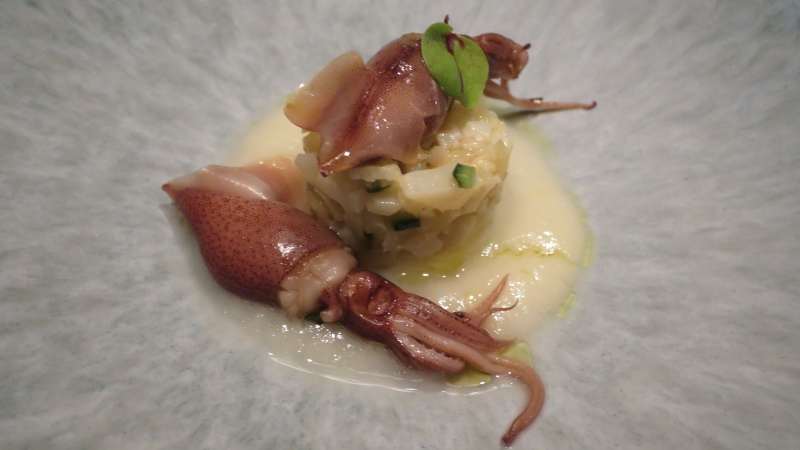 アミューズ。「箱根離宮 “ Tana ” からの贈り物~ アオリイカとホタルイカ ~」です。