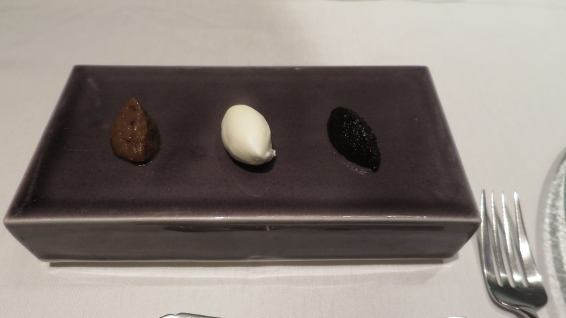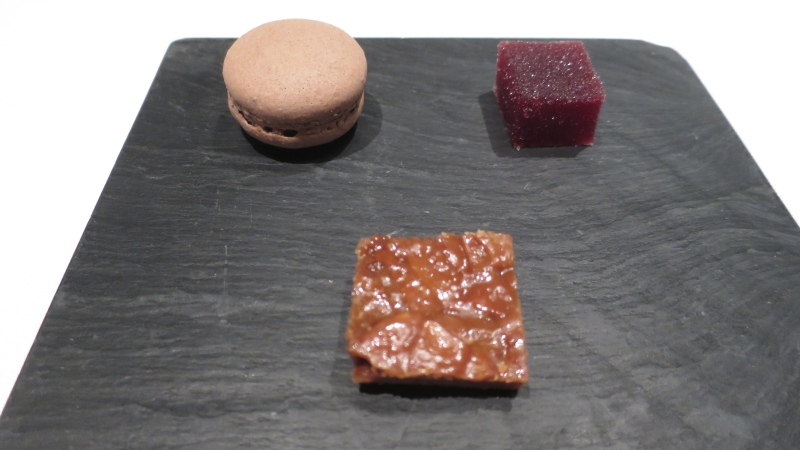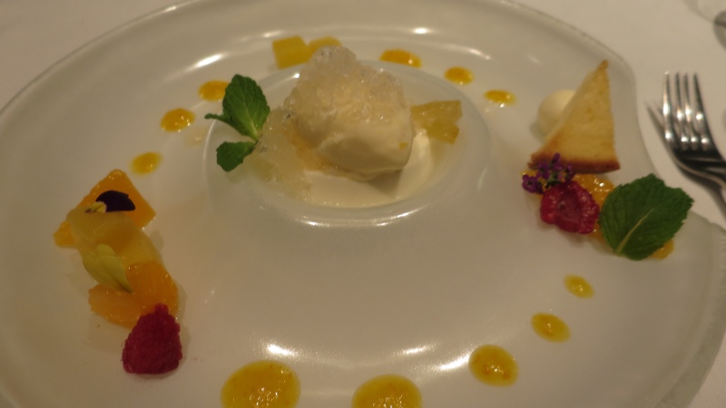 グラニテ、と聞いて、最後にソルベなのかな、と思ったのですが、ソルベというよりはムースの上にアイスが乗っていて、レモンのジュレと一緒に頂くと、さっぱりとして、美味しかったです。