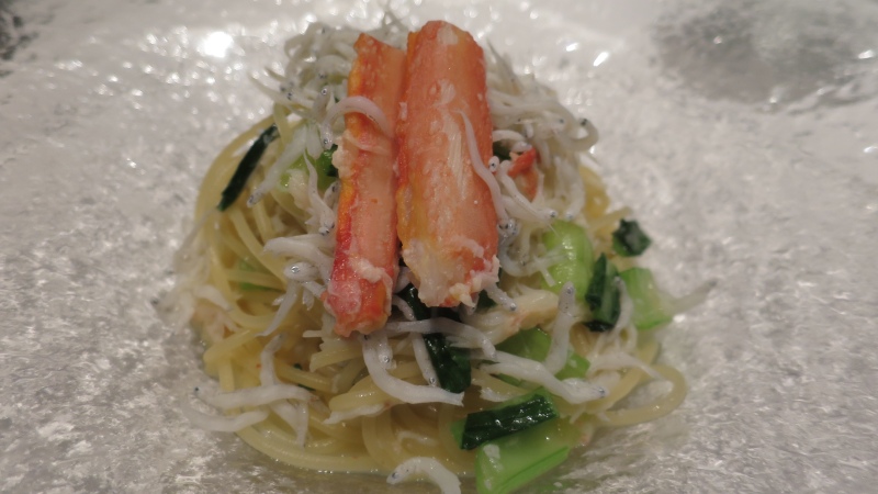 パスタは、「ズワイガニと駿河湾産釜揚げしらすのスパゲティーニ」です。