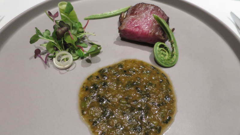 お肉料理は、「黒毛和牛ロース肉の網焼き ソースラビゴット」です。