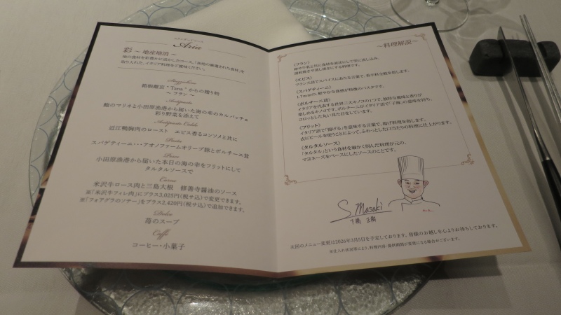 箱根離宮のターナで、アリアのコースをいただいてきましたので、ご紹介します。〔25年12月訪問〕