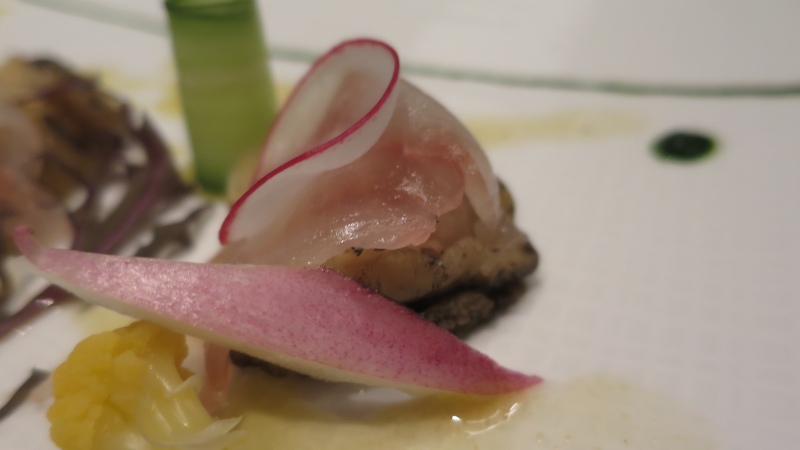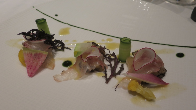 全体的にあっさりしていますが、お魚のおいしさが楽しめますし、見た目も綺麗な前菜です。