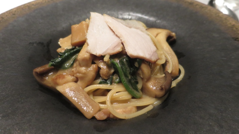 パスタに、茸が何種類も入っています。大黒しめじやハクレイ茸など。茸の香りが濃厚なパスタです。前菜があっさりしていたので、インパクトがあって良い感じです。