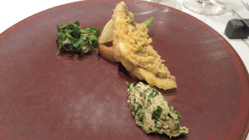 本日の海の幸は、ホウボウ。タルタルは、柚子、高菜が入っていて、和風っぽく、初めての味でした。サクッとした衣にタルタルが良く合っていました。