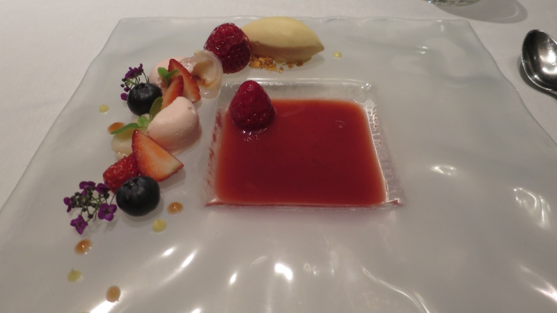 苺のスープは甘めですが、カシスとかバラとかが混ざっていて、爽やかです。