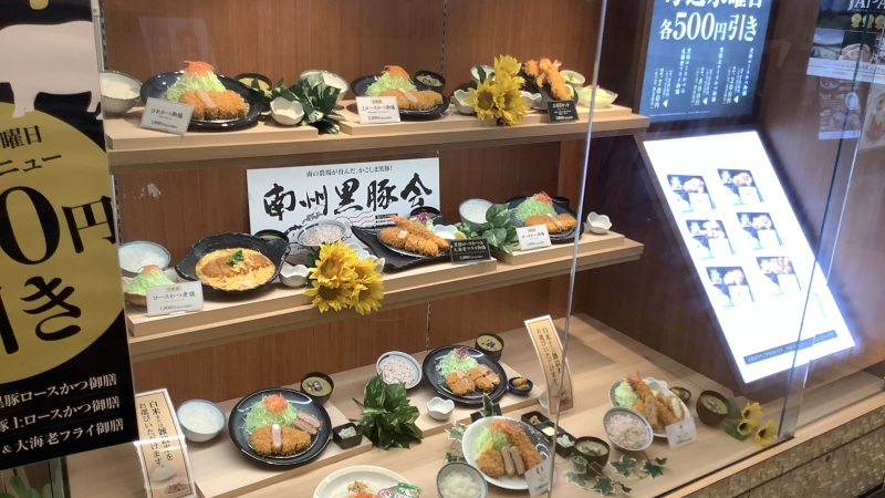 こういうディスプレイは重要ですよね。今回はとんかつと決めて入ってきたのですが、そうでないときには、お得割引で決めたりしますし。