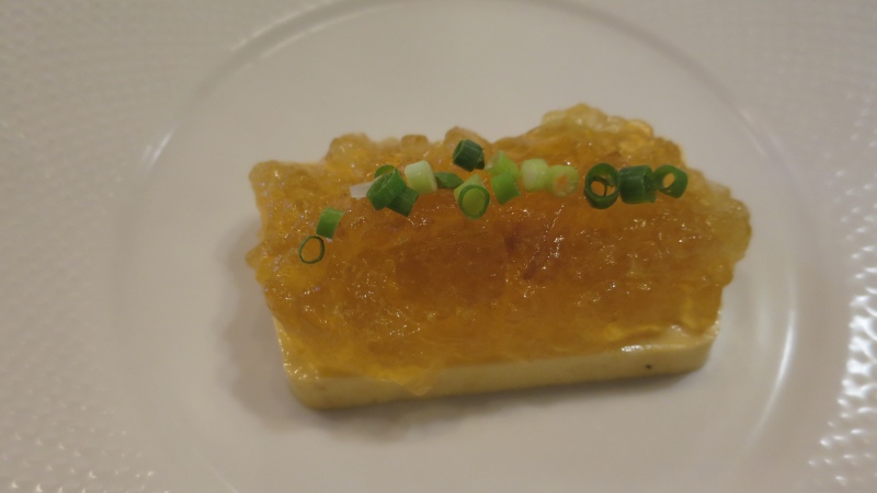 コンソメジュレが、ちょっと酸味が効いている感じで、爽やかでした。テリーヌ自体もあっさりしていて、ウニの香りがしっかりとして、美味しかったです。