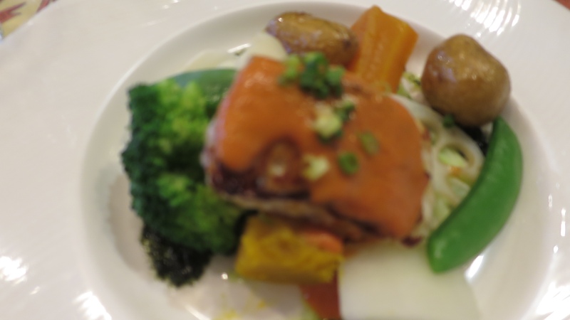お魚はアンコウ。ちょっと皮が硬かったので、外して食べる感じになったため、食べられる部分が少なかったかな、と思いました。