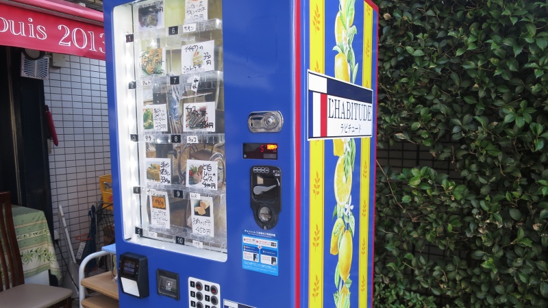 そして、お店の外には、なんと、自動販売機がありました。南フランスをイメージしたデザイン、だそうです。