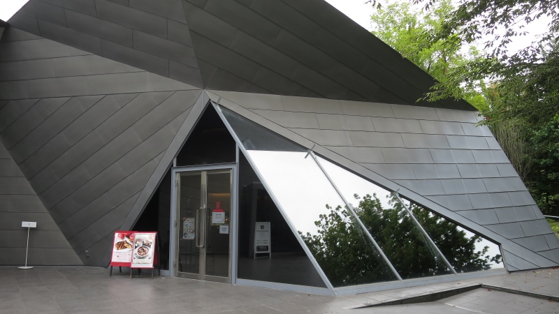 そして、千住博美術館の駐車場の脇にある建物。ミュージアムショップと浅野屋が入っています。美術館は、建物の右側の通路を進んでいった先にあります。