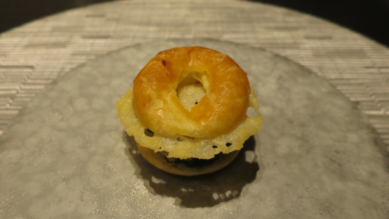 アミューズは、「豚肉のリエットを詰めたグジェール パリブレスト風」です。