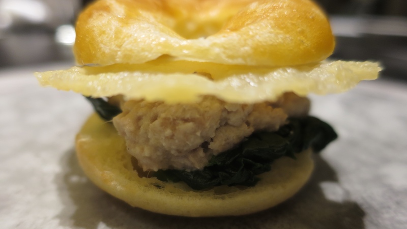 パリッとしたチーズが挟まっているのが、斬新です。