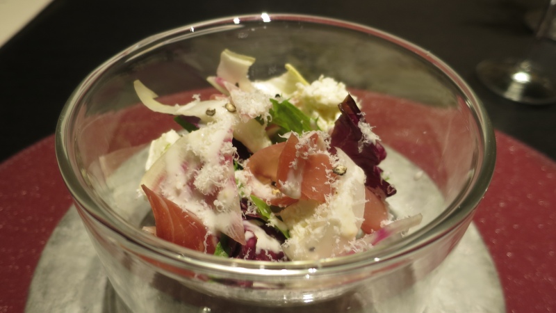 前菜は、「生ハムのシーザーモダン ブルサンアイユのアクセント」です。