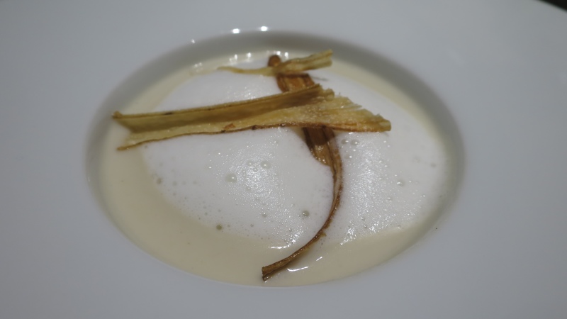 スープは、「サルシフィーのポタージュ」です。蓋つきの器で、熱々で出てきました。