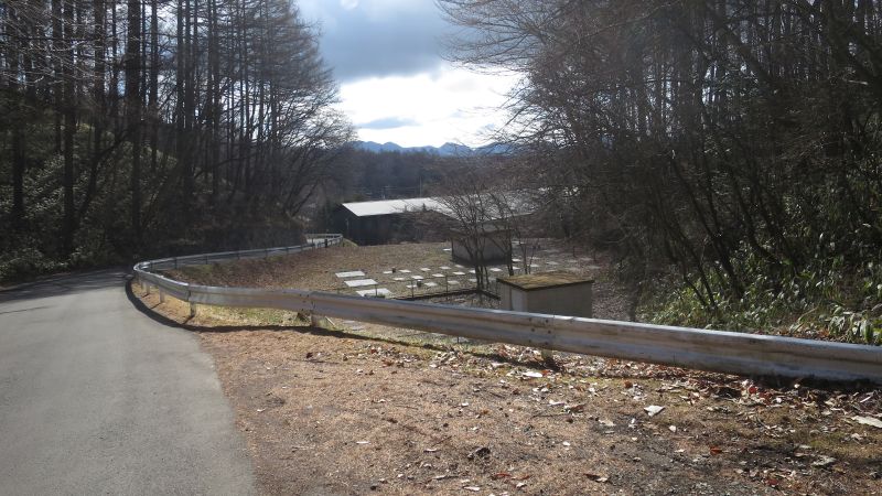 ちょっと急な車道を進んでいくことになります。この写真は、坂を少し上ったところから振り返って、BEB軽井沢の建物をみたところです。
