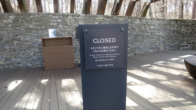 外国の旅行者を含め、見学希望の人がぱらぱらと来ていたのですが、挙式の最中ということで、CLOSEDでした。ただ案内のスタッフが少し混乱していて、最初は14時過ぎにならないとみることができません、と言っていたのですが、しばらくしたら、5分待てば後ろから入れます、と変わりました。最初の案内を聞いて、あきらめて帰ってしまった方もいました。