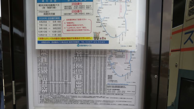 | 西コース | 軽井沢病院、中軽井沢駅、鳥井原団地前(ツルヤ前)、借宿、信濃追分駅、追分公民館、三ツ石公民館 |