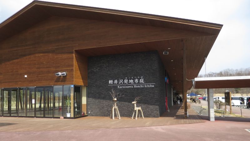 軽井沢発地市庭。町内循環バスでリーズナブルに行くことができますが、ちょっと時間がかかるかな、と感じました。