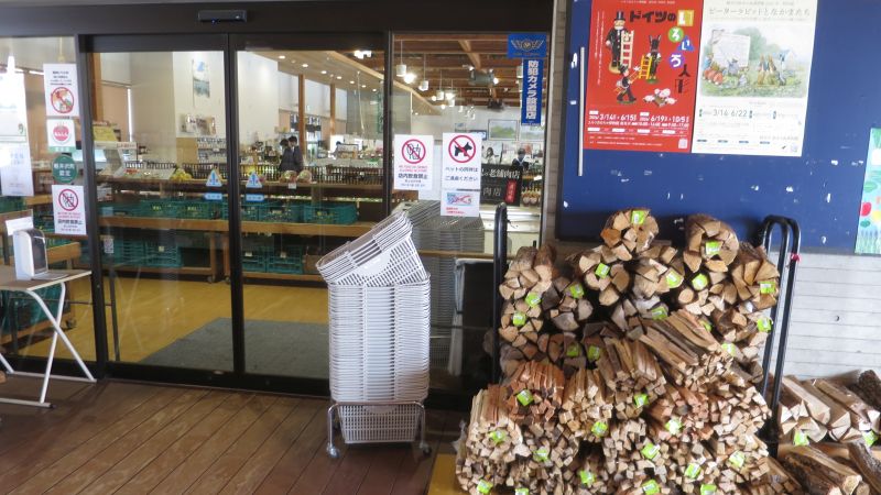 こちらが農作物直売所です。薪を売っているところが、軽井沢を感じます。