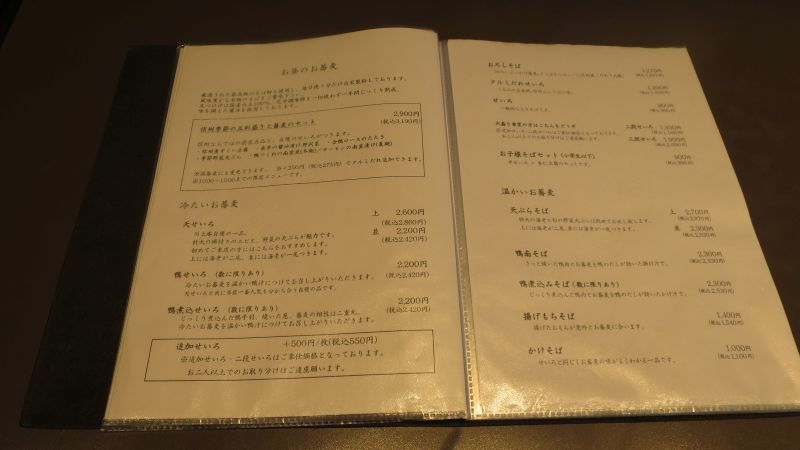 メニューは、冷たいお蕎麦、暖かいお蕎麦、いろいろありました。