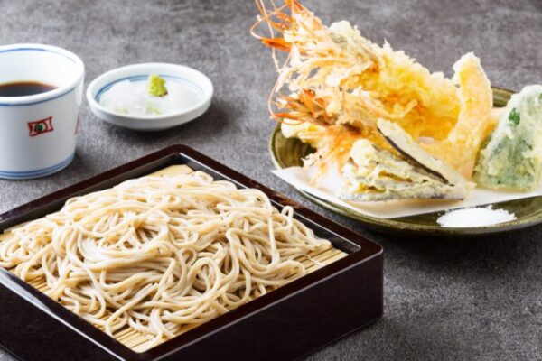 その中でいただいたのは、天せいろです。2,600円(税込2,860円)の「上」だとエビが2尾、2,200円(税込2,420円)の「並」だとエビが1尾だそうです。今回は、並にしました。