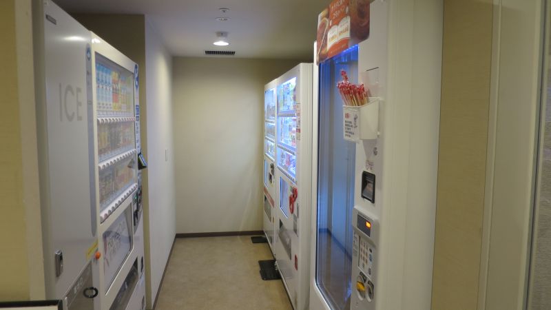 中に入るとこんな感じです。写真に写っている自動販売機の向かい側にも、自動販売機があります。