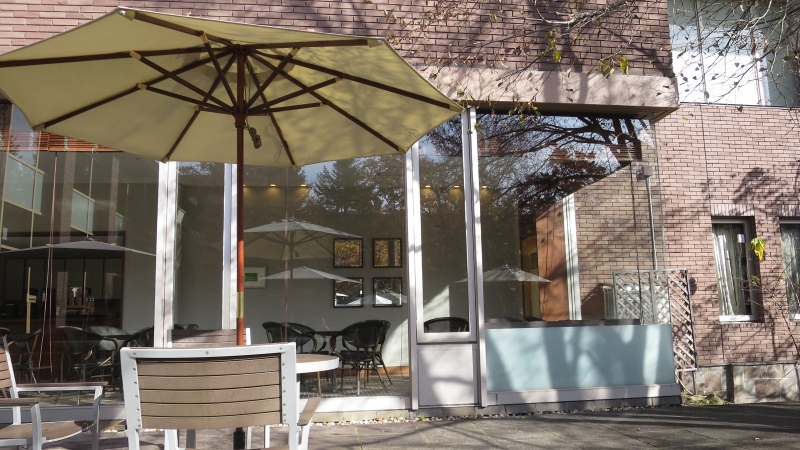テラスは、中も外も、ゆっくりとすることができます。たまに利用している方を見かけることがありますが、基本的には空いていることが多いような気がします。