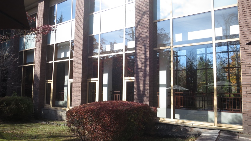 セルフラウンジの建物の左側は、エントランスから本館に続く、ロビーなどがある建物です。