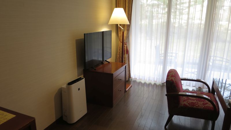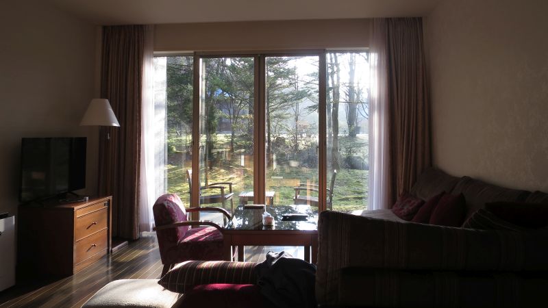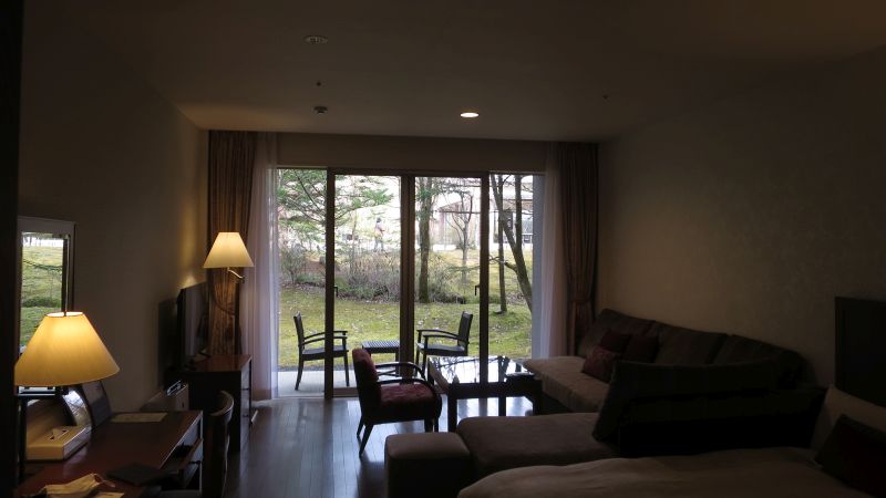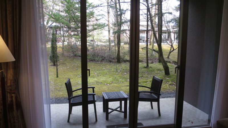散策路を歩く人が見えて、なかなか気持ちの良いお部屋です。ただ、レストランやお風呂に行くのがちょっと遠いかな、と思いました。