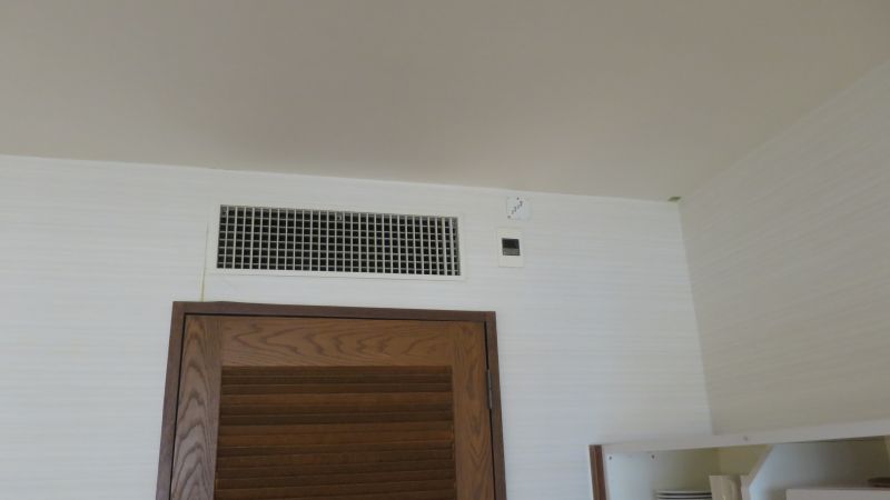 空調の入れ替えでリモコンなしになり、入口に操作パネルが置かれているお部屋もありますが、この部屋はまだのようです。