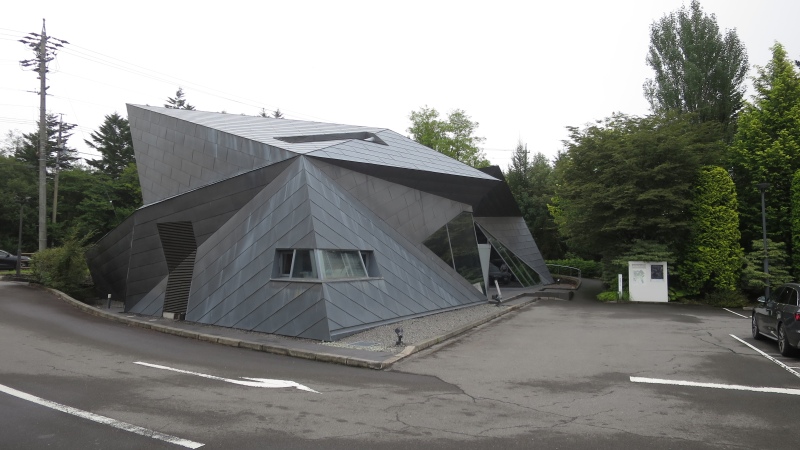 駐車場の奥に、建物があります。あれが美術館か、と思ったのですが。