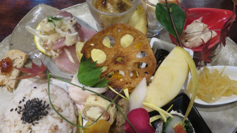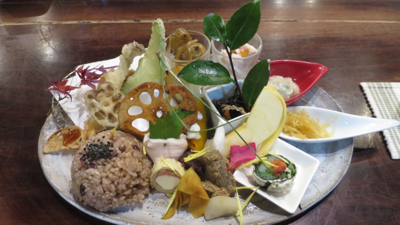 そして、お料理がワンプレートに乗って出てきます。こちらは、天ぷらの方ですね。