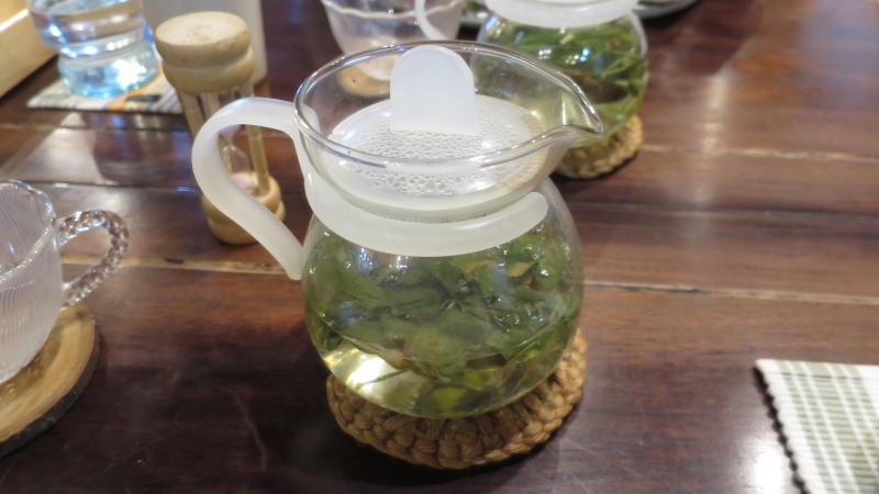 そして、お茶も一緒にいただきました。自家製のハーブティーとどくだみ茶にしました。