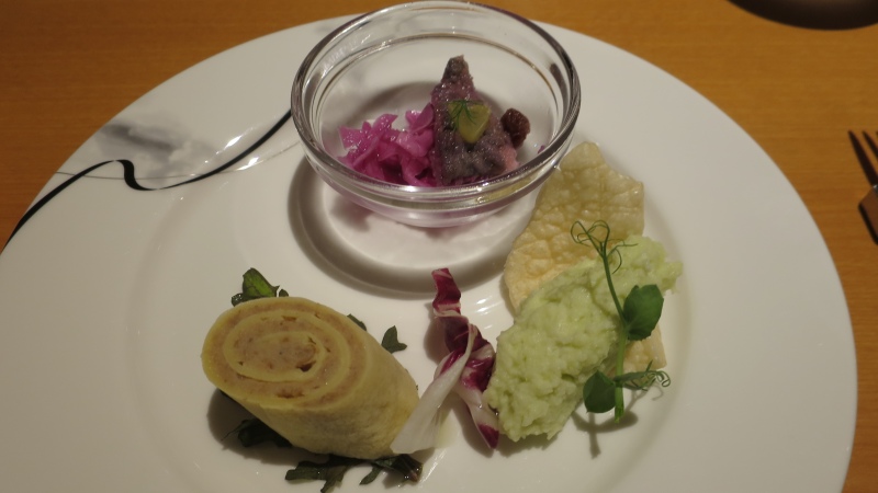 那須郡司豚のリエット 鯵のエスカベッシュ 空豆のムース