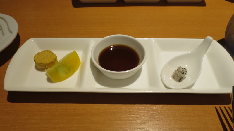 レモンとカレーバター、フォンドボー、トリュフ塩が出てきます。