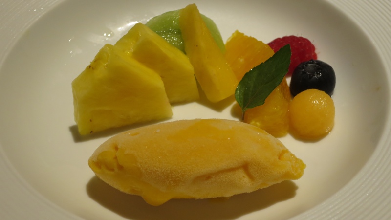 デザートは、「季節のフルーツとマンゴーのアイス」です。