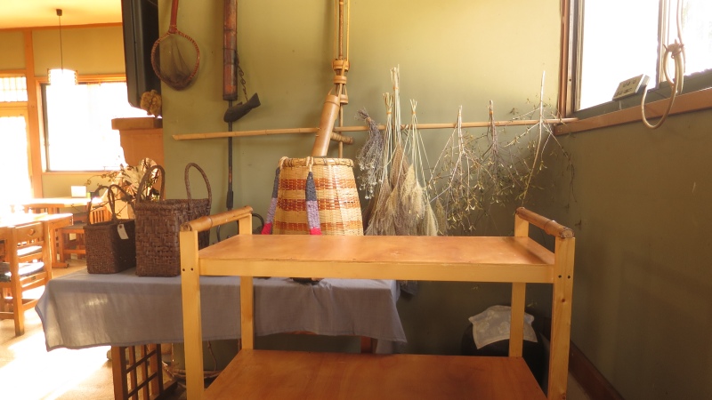 片隅には、魚籠のようなものが置かれています。