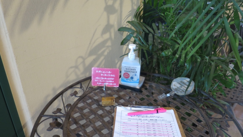 11時に到着したのですが、モーニングの方、ランチ一番乗りの方で満席。テラス席や、入口通路の反対側のスペースであれば、すぐにご案内できます、と言われたのですが、蒸し暑いですし、初めてなので店内でいただきたく、店頭のリストに名前を書いて、しばらく待ちました。