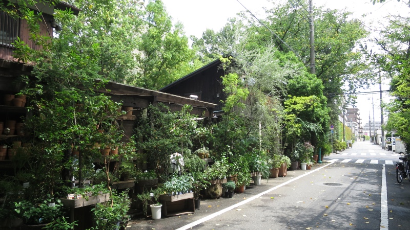 建物の入口から見た花屋さんです。