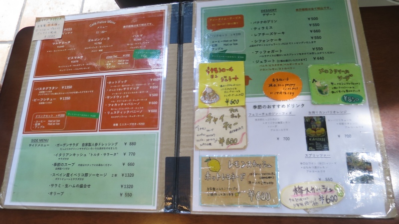 カフェなので、ピザやシチュー、サンドウィッチやサラダ、ケーキなど、いろいろなメニューがあります。